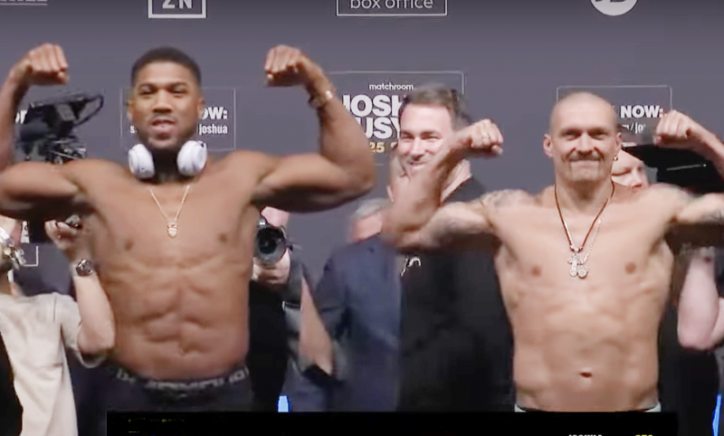 ジョシュアとウシクがマッスルポーズ(c)DAZN