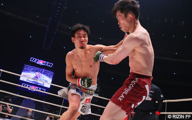 昨年大晦日、弥益を1RKOした朝倉(左)フィジカルアップした今回の戦いはいかに
