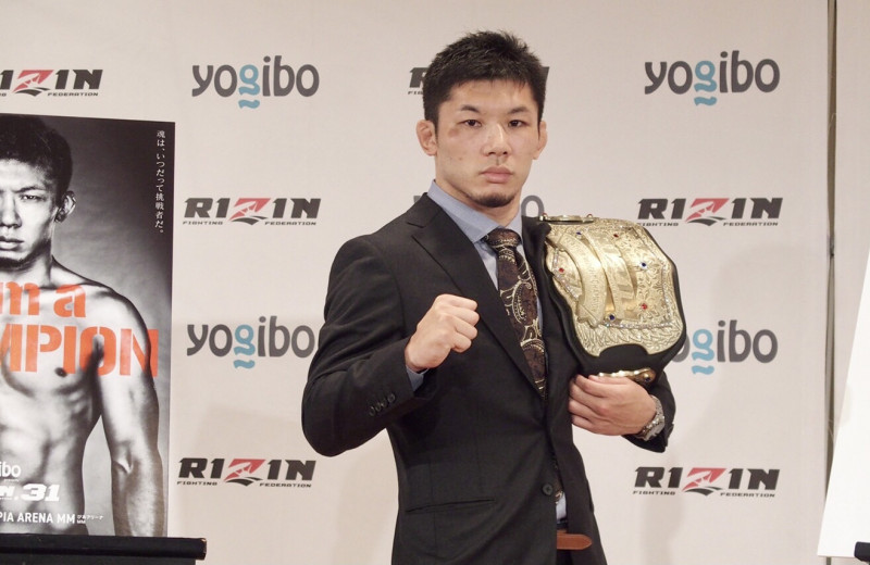 自身の”単体ポスター”を横に構えるメインイベンター・斎藤