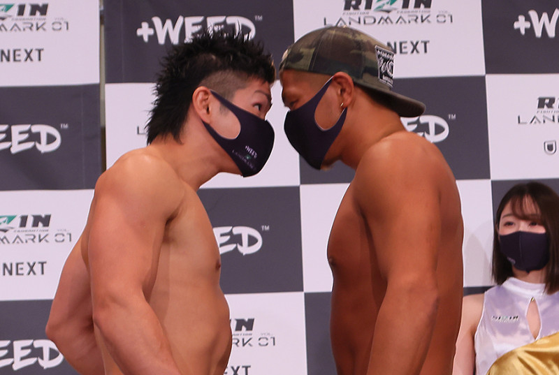 MMA初挑戦の元SB王者・鈴木(左)がプロレスラー奥田(右)と激突!©️RIZIN