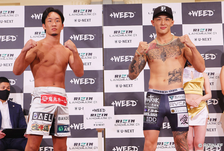 昨日の前日計量。朝倉未来(左)と萩原京平