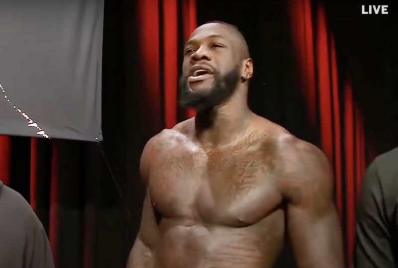 計量後、フューリーと言い合いになる(PBC ON FOX YouTubeより)