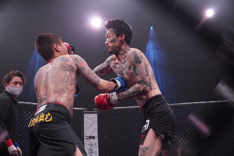 前回のセミファイナルには顔面&全身タトゥーの“アウトローのカリスマ”瓜田純士(右)が出場、判定勝ちを収めた
