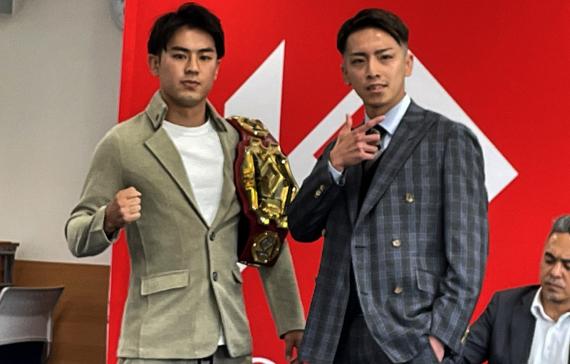KNOCK OUT-REDスーパーバンタム級王者・小笠原瑛作(左)と挑戦者に壱・センチャイジム(右)