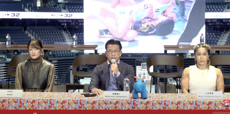 会見で並ぶ山本美憂とRENA(C)RIZIN