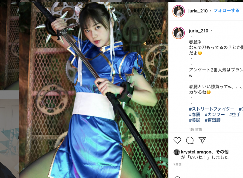 春麗(チュン・リー)コスプレの長野(長野じゅりあインスタより)