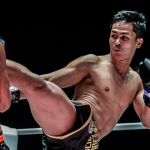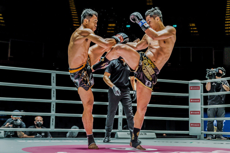 「最もタフだった」というシッティチャイ(左)とミドルを打ち合うスーパーボン