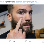 会見の冒頭で睨み合う両者、乱闘はここから始まった(Getty)