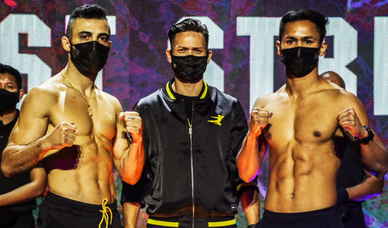 初代フェザー級キックボクシング王座決定戦に挑むペトロシアン(左)とスーパーボン(右)©️ONE