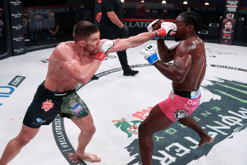槍で突く様なジャブを打つネムコフ(左)©️Bellator