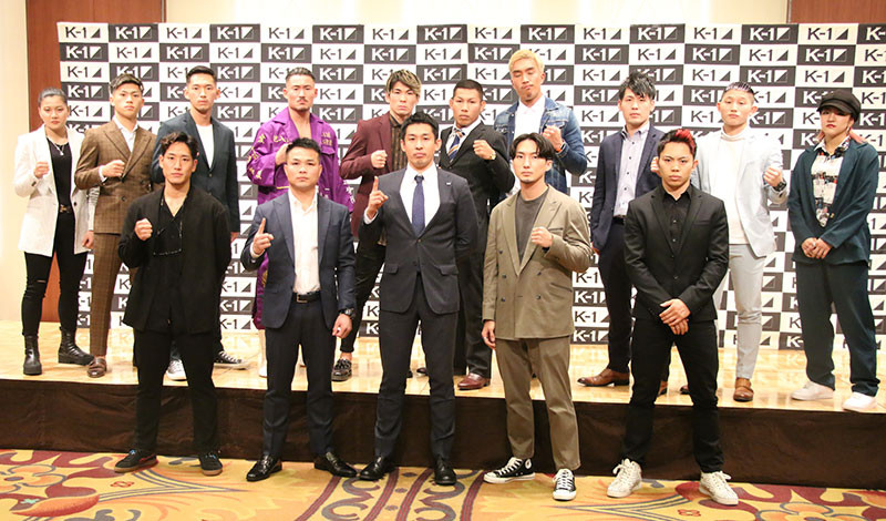 会見に出席した選手たちとK-1中村プロデューサー