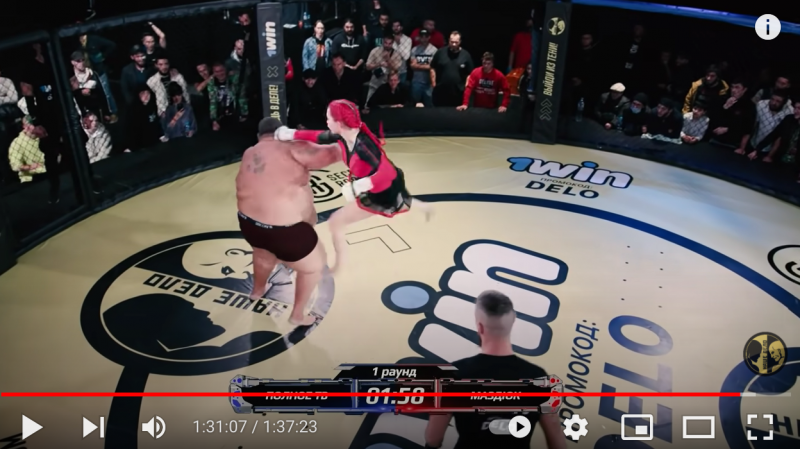 ダリナがスーパーマンパンチ!(Наше Дело映像サムネイルより)