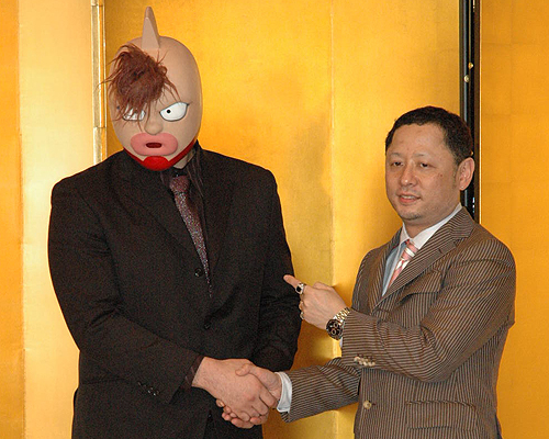 【Dynamite!!】会見時のキン肉万太郎(左)と作者の嶋田隆司氏(2008年12月)