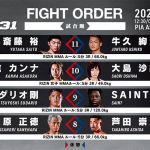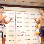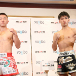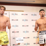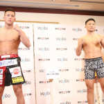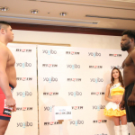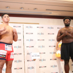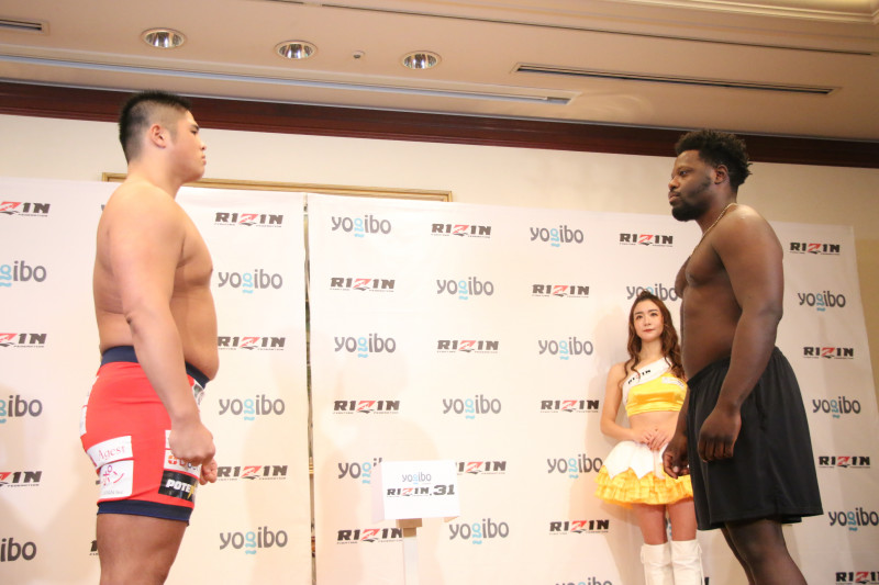 スダリオ(左)とSAINT、100kg超の2人がフェイスオフで睨み合う