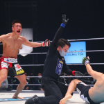 右のパンチをヒットさせる白川