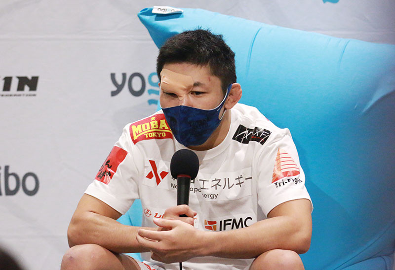 カットした額の手当を終え、インタビュー会場に現れた斎藤