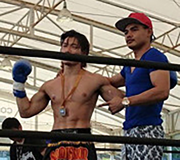 グラディエーターの大会はキックルールで勝利。右はムエタイ元WMC王者タップロン