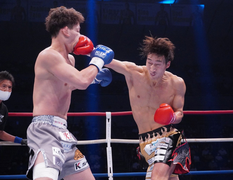 安保の右ストレートがヒット!相手選手の顔が歪む