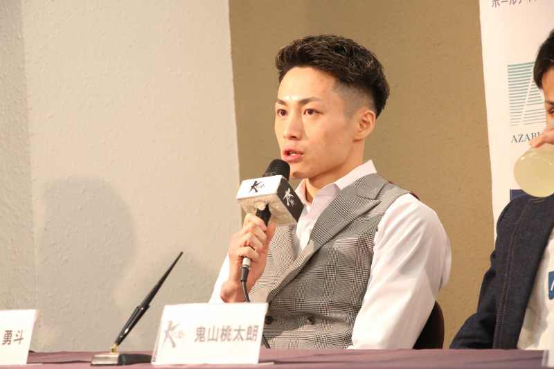 会見でコメントする黒田