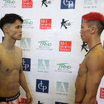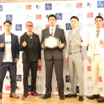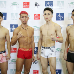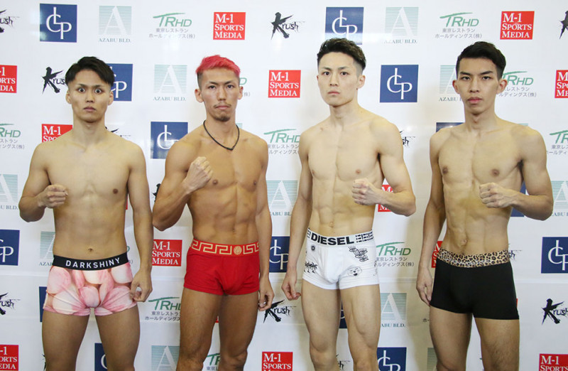 Krushスーパー・バンタム級王座を争う(左から)鬼山桃太朗、内田晶、黒田勇斗、璃明武