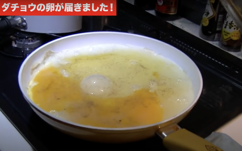 ダチョウの卵をフライパンで焼く(アントニオ猪木「最後の闘魂」チャンネルより)