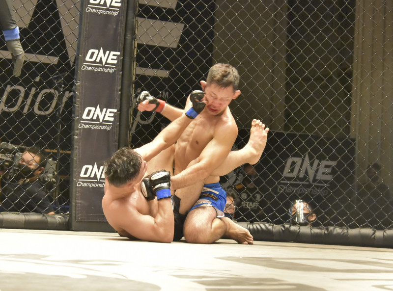 下からパンチを突き上げる西川