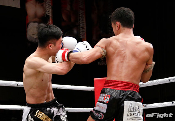 パンチでも倒せる梅野、左フックでダウンを奪いKO勝利=19年