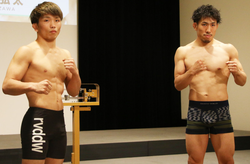 原口伸(左)と岡澤弘太(右)が激突