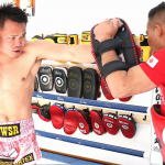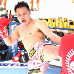 ゴンナパーの気合の膝蹴りがミットに食い込む!持ち手は苦しそうだ(c)K-1