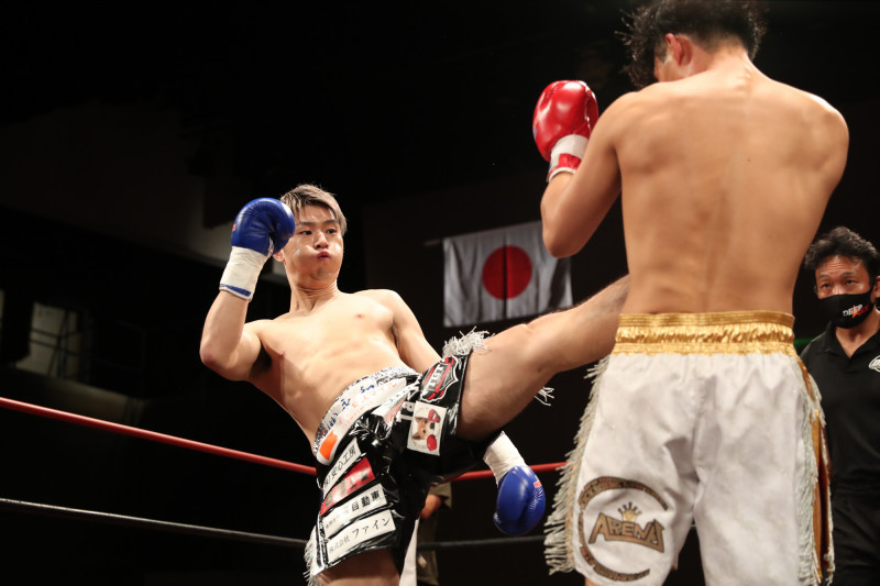 蹴りを放つ稲井(2021年9月)