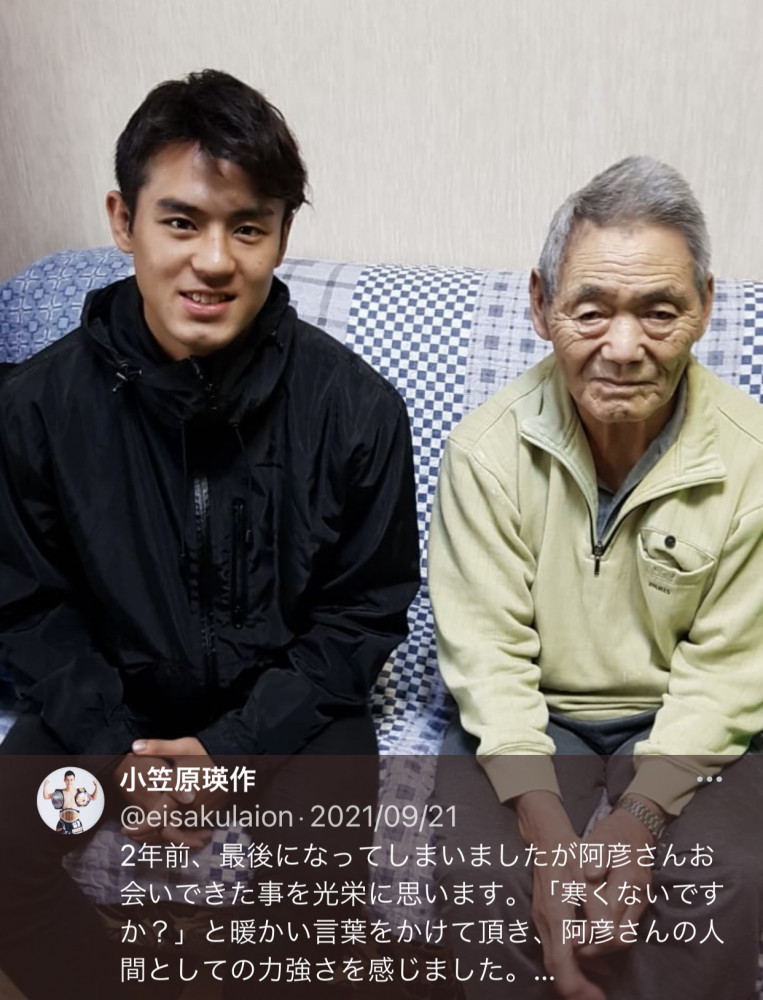 映画のモデルとなった阿彦さん(右)と並ぶ小笠原@eisakulaion