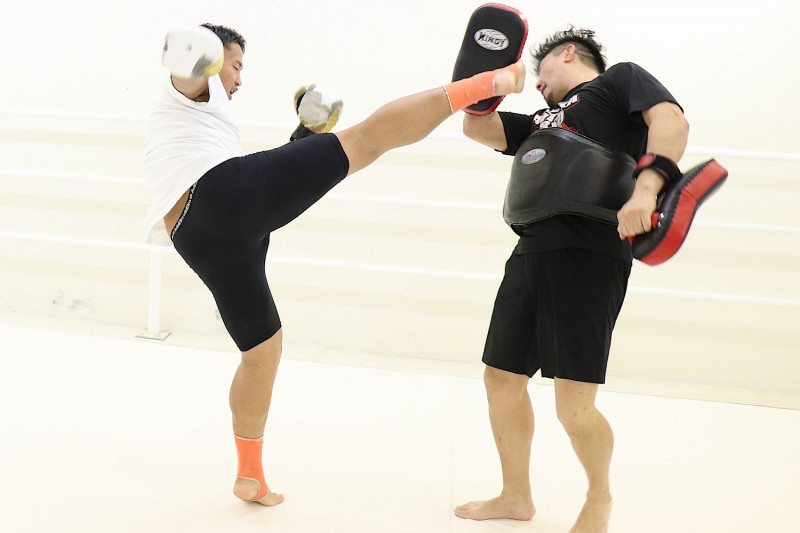 ミット打ちを披露する谷川聖哉©️K-1