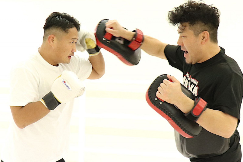 ミット打ちを披露する谷川聖哉©️K-1