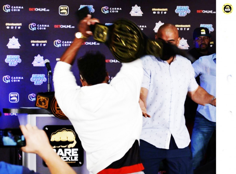 挑戦者が奪ったベルトを床に叩きつける暴挙@bareknucklefcより