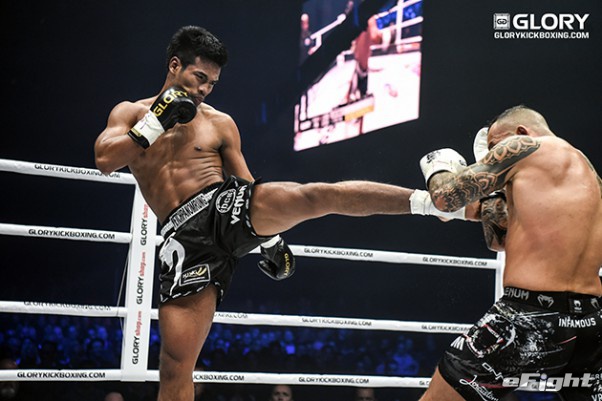 原口と対戦する、GLORY王者ペットパノムルン(左)