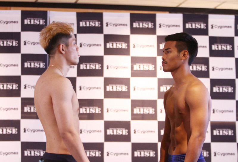 原口(左)とペットパノムルンが計量後にフェイスオフ