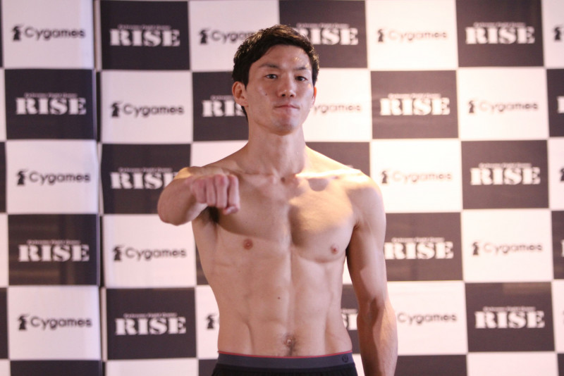 パンチのポーズをする江幡