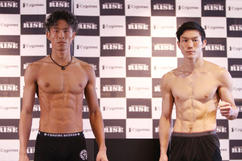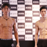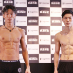 鈴木(左)と江幡(右)が仕上がった肉体で計量パス