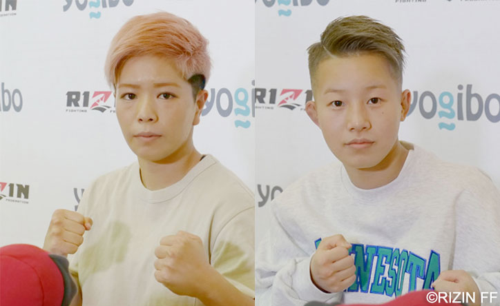 個別インタビューに答えたにっせー(左)と古賀
