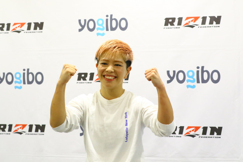 笑顔でマッスルポーズを見せたにっせー、地元・沖縄での勝利を果たした