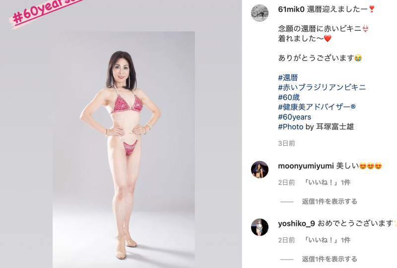 還暦の”赤いビキニ”の夢が実現(鈴木 多美子インスタグラムより)