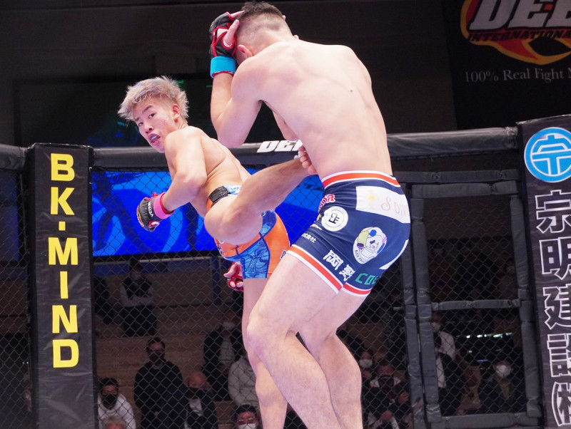 鋭いバックスピンキックを当てる神龍