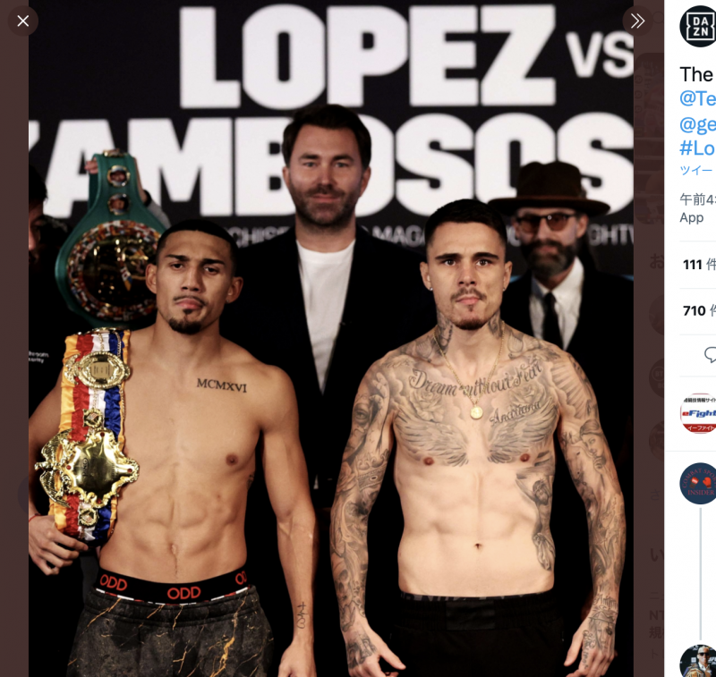 ロペス(左)と挑戦者カンボソス(c)DAZN