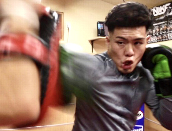 安保戦に向け気合を入れたミット打ちの海斗(C)K-1
