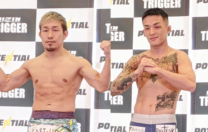 昇侍(左)と萩原京平が計量パスし互いに「ぶっ倒す」と強く意気込んだ