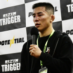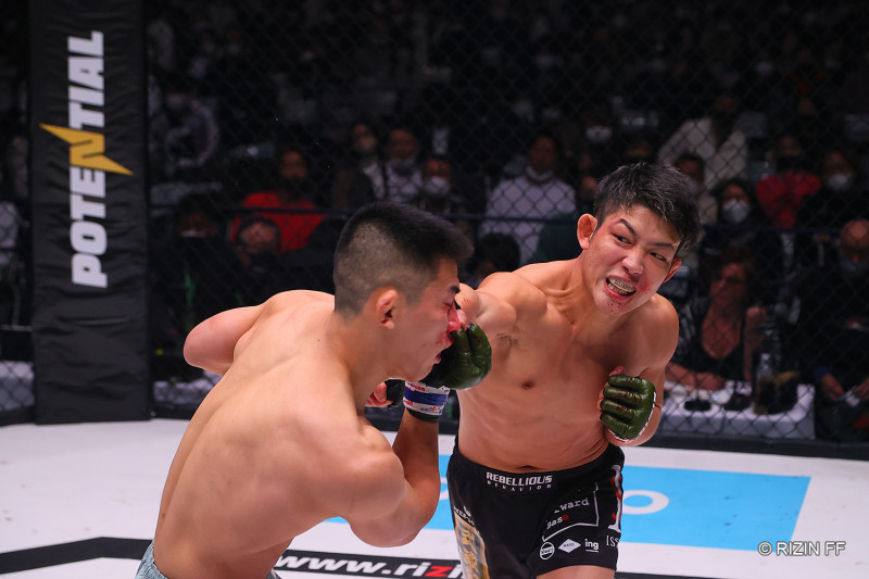 鬼気迫る表情で右拳を強打する堀江©️RIZIN