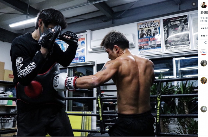 皇治が驚愕の背筋でミット打ちを公開(皇治インスタグラムより)