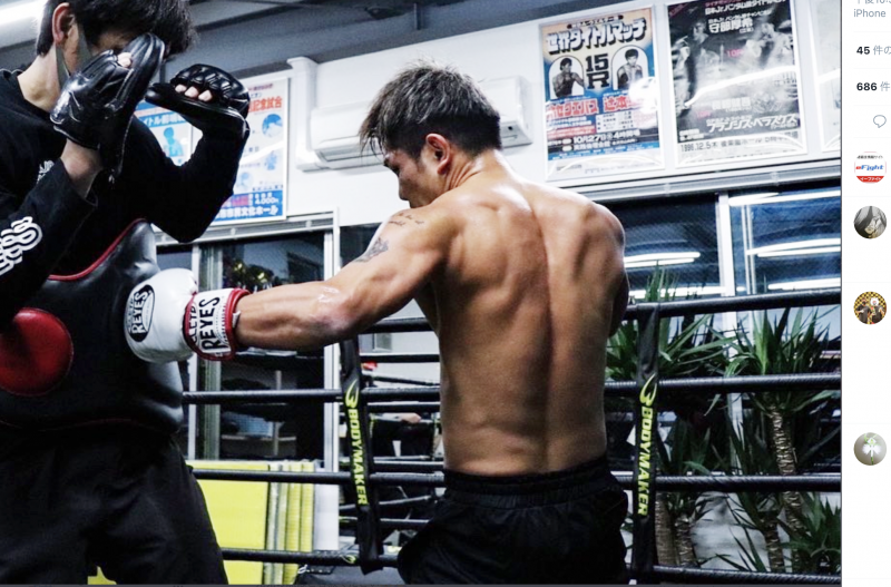 皇治が驚愕の背筋でミット打ちを公開(皇治インスタグラムより)