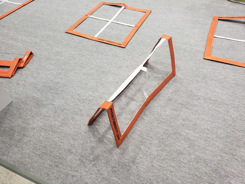 ラダー。並べれば、はしご形になるが、そのままでもその場でできる。写真のように立ててジャンプするなど、トレーニングの幅が広がる『ペナルティボックス』
