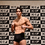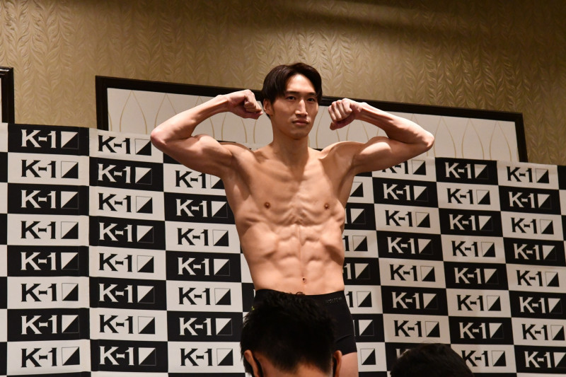 マッスルポーズを決める安保